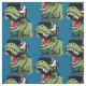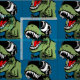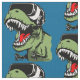 T-rex engraçado com os auriculares e o auscultadores da realidade virtual.