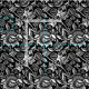 Tecido de um antigo William Morris, Art Nouveau, impressão floral de girassóis estilizados, melhorados digitalmente e coloridos, a preto e branco, acentuados com cinzas de prata / cinza