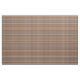 Este tecido tem um design geométrico de uma xadrez com linhas castanhas e brancas sobre fundo preto.