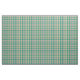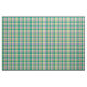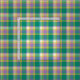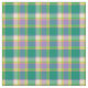Tecido com um padrão de xadrez original Plaidwerx em verde-claro, limão e xadrez roxa-do-mar, com realces cor de laranja claro e creme. O padrão repete a cada 7/8". Ordem especial maior escala via https://plaidwerx.com/contact.htm