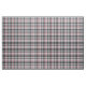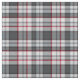 xadrez de tartã texturizada por cinzas finas, vermelhas e azuis.