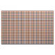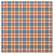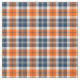 Tecido com um padrão de xadrez laranja e azul com realces brancos, azuis-claros e cinzas. Um design de tartã original de Plaidwerx com cores desenhadas a partir do logótipo da equipe desportiva profissional. O padrão repete a cada 1+3/8". Ordem especial maior escala via https://plaidwerx.com/contact.htm
