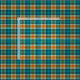 Este tecido tem minhas madras originais tipo tartan xadrez em tons de azul turquesa e laranja-ouro com um pouco de branco.