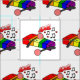 design LGBT-temático que caracteriza um xilofone do arco-íris; as notas e os corações parecem dizer que este instrumento musical semeia a música do amor