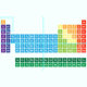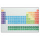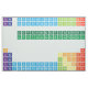 Tecido da mesa periódica que caracteriza a mesa periódica dos elementos, com cada grupo do elemento marcado em cores do arco-íris.