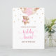 Urso Cinzento de Água, Rosa e Balões Dourados Rosa Guee Quantos Ursos de Marmalade Estão No Sinal De Chá de fraldas De Jar. Design apresenta um esquema de texto elegante e moderno. Para fazer alterações avançadas, selecione a opção "Clique para personalizar mais".