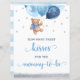 Balões Azuis e Prateados De Urso Aquarela Adivinham Quantos Beijos Estão No Sinal De Chá de fraldas. Design apresenta um esquema de texto elegante e moderno. Para fazer alterações avançadas, selecione a opção "Clique para personalizar mais".