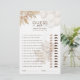 Jogo de chá de fraldas de ursos de boho com um simples fundo branco comum, um urso de aquarela, balões, grama-pampas boêmica rustica, florais e um modelo de "adivinhem quem, mamãe ou pai" que é fácil de personalizar.