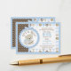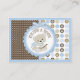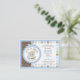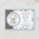 Um ursinho de pelúcia bonitinho e branco lendo um livro com um arco azul e medalhão de aparência 3D, fita de stripe e arco sobre impressões de polca com pata de urso trazem uma inserção para o chá de fraldas de menino.