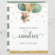 O Urso De Urso De Água Com Carro Salga Balões Verdes E Dourados Quantas Candies No Sinal De Chá de fraldas De Jar. Design apresenta um esquema de texto elegante e moderno. Para fazer alterações avançadas, selecione a opção "Clique para personalizar mais".
