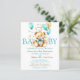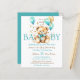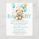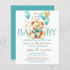 Ursinho-peluche-de-flor-cúmulo com um arco, aguarde-se aqua azul-dourado com balões dourados aspersores chá de fraldas modelo convite
