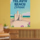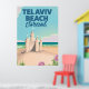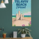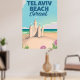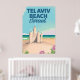 Tel Aviv Beach Israelita, poster de viagens do estilo vintage. Cartoon de praia em Sandcastle.