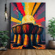 Este trabalho de arte ousado celebra o ritmo e a cultura africanos com tambores e djembes conversadores estilizados sobre um fundo de abstrato vibrante. Padrões de linha ritmica e formas geométricas fluem através do design, enquanto pinceladas texturizadas e cores ricas trazem profundidade e energia. Perfeito para amantes da música, espaços culturais e muros de afirmações, esta peça incorpora movimento, tradição e expressão artística.