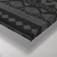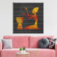 A arte africana inspirou decor estirado na parede da canvas feito em um fundo preto e com padrão de cinza. Uma antiga silhueta parecida com uma mulher africana tocando tambores decora o centro da canvas.