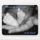 Nosso "tem o mundo inteiro mousepad nas suas mãos" é um presente perfeito para a família com um bebê novo. Esta versão caracteriza uma foto preto e branco dos pés do bebê que descansam com segurança nas mãos do pai. A rotulação mostrada aqui no azul para meninos pode facilmente ser mudada ao rosa para bebês da menina. Livre - e - fácil personalizar!