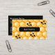 Cartões de visitas temáticos de mel de abelhas com um padrão gráfico de colmeia no fundo e abelhas na frente com os detalhes de contato no verso. Funciona como cartão de visita para apicultor, serviços de controlo de pragas para remoção de abelhas ou produtos relacionados com mel.