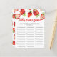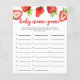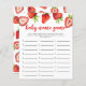 Cartão de jogo "baby name" do tema do morango branco com ilustração aquosa da fruta vermelha. Os textos são editáveis. Um jogo perfeito para jogar durante o chá. aos hóspedes para anotar nomes de bebês que começam com cada alfabeto. Quem termina todos os alfabetos primeiro ganha!