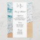 Este modelo da placa de menu é mostrado no papel mate básico com um adorável impressão de foto de praia com script e texto padrão em preto. Personalize os itens de menu e mude para o seu clicando em personalizar botão de edição, procure à direita e encontre as caixas apropriadas para mudar para suas informações. Desejo-lhe os melhores votos para o seu Dia de Casamento. Impressão de ações