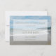 Este casamento com o tema da praia salve a data do convite mostra os nomes do casal no céu com o anúncio de que eles vão se casar. As palavras "SALVAR A DATA" aparecem no oceano e a data aparece na areia, juntamente com as palavras "Convite formal a seguir". Um tema de praia impressionante salva o convite de data. Direitos autorais