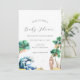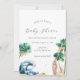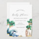 Este convite para chás de fraldas na praia tropical com ondas oceânicas, palmeiras e conselhos surfs é o convite perfeito para meninos e meninas.