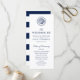 Adicione seus detalhes para criar um cartão de programa de casamento único e clássico, mas moderno, em estilo náutico. Este design apresenta uma ilustração da célula náutica de navegação vintage, seguida dos seus detalhes por baixo. No verso há uma série de faixas marinhos e brancas para completar a aparência. Todos os elementos deste item são ajustáveis utilizando a função de personalização. Aproveite criar e fazer-o seu.