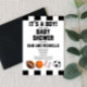 Este é um convite para chás de fraldas de esporte para um menino. O design inclui beisebol, basquetebol, bola de futebol e futebol. Faça referência ao tema. É um menino! Preto e Branco.