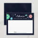 Cartão de chá de fraldas sobre o tema do espaço em branco com ilustração da galáxia - planetas, estrelas e um OVNI. Atividade perfeita para fazer durante o seu evento.