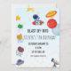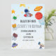 Prepare-se para DECOLAR para a diversão com este adorável convite de aniversário temático espacial! Com charmosos astronautas de desenho animado - um gato, cachorro e sapo - juntamente com planetas coloridos, foguetes e estrelas, este convite é perfeito para o dia especial do seu pequeno astronauta.