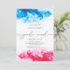 Uma fumaça azul e cor-de-rosa com o tema "Gênero do bebê" Revela convite de festas. Num fundo branco, a elegante fumaça azul e rosa engole as bordas e o texto da tipografia negra lê Gênero revela.
