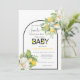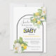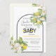 tema de arco limão pequeno cartão de convite para chá de fraldas de docinho com uma imagem de fruta de jardim em uma ramificação de árvore. Perfeito para o chá de uma garota de verão.