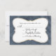 Uma placa rsvp náutica à vela. Colocado sobre um fundo de fevron azul escuro com uma moldura decorativa de rico. Este design tem um aquor cor-de-rosa pintado com aquarelas e tem uma corda verde enrolada ao redor dele. Uma concha fica na base. Personalize com suas informações de casamento.