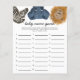 Cartão de jogo "baby name" do chá de fraldas safari "Cute safari" com ilustração de animais (leão, elefante, zebra). Os textos são editáveis. Um jogo perfeito para jogar durante o chá. aos hóspedes para anotar nomes de bebês que começam com cada alfabeto. Quem termina todos os alfabetos primeiro ganha!