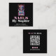 Um artista de unhas editável Tarot temed modelo de cartão de negócios, com código QR, identificadores de mídia social e tipografia de vintage em rosa e branco sobre fundo preto. Código QR verificável direciona instantaneamente os clientes para a página de reserva.