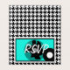 Tema Teal, azul, preto e branco da placa de saudação/rsvp verificada em 1950. Veja o resto da coleção.