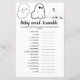 Apresentação do fantasma do tema do Halloween, carta de palavras rasgadas para o chá de fraldas As palavras neste cartão estão todas relacionadas a bebês e foram embaralhadas. Os hóspedes vão competir para ver quem pode desembaraçá-los todos primeiro! CHAVE DE RESPOSTA: 1. 2. Leite 3. MÓVEL 4. Pacificador O quinto ponto é uma cadeira de balanço de fralda. 7. berçário 8. baby monitor; 9. swaddle 10. SOMBROS. 11. BLANKET 12. carrinho. 13. SWADDLE. 14. 15. CRIB.