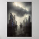 Uma tempestade furiosa com muita chuva quando atinge a cidade e o oceano está batendo sobre a cidade. Esta é uma arte gerada por IA.