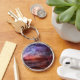 Padrões fractais brancos girando sobre um pano de fundo de tons de laranja e azul, como o nascer do sol se quebrando através da tempestade.