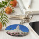 chaveiro de Botão Básico de 2,25" com uma fotografia das rosas rosa do Templo de Los Angeles no primeiro plano.