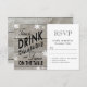 Flocos de neve brancos e neves em um fundo de conselho de celeiro decoram este RSVP divertido e flerto. Role para baixo para ver a coleção completa.