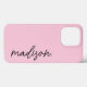 Crie sua capas de iphone única! Esta capas de iphone simples e moderna apresenta um fundo cor-de-rosa pincelado e personalização preta em uma fonte de script delicada e bonito. Fácil de atualizar o modelo - adicione qualquer texto que desejar. Disponível em capas rígidas e com poucos estilos para todos os modelos de iPhone. Adicione o seu próprio texto e torne-o exclusivamente seu!