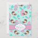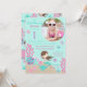 Pequena carta de convite para o primeiro aniversário da sereia com criaturas submarinas e modelo de inserção de fotos.