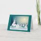 O cartão do feriado do divertimento que caracteriza o boneco de neve no cobrir e tem um cumprimento feliz da época natalícia para dentro