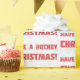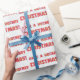 Tenha um papel de embrulho de presente de Natal de Hockey, com um design de texto vermelho de floco de neve sobre fundo branco de floco de neve.