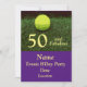 Tênis 50º e o Convite de aniversário fabuloso com tênis está sobre a grama verde com fundo roxo