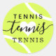 adesivos de design de tênis com palavras repetidas em bonitinhas femininas femininas e fontes modernas em um simples fundo brilhante amarelo-esverdeado de tênis, excelente para um convite de tênis de aniversário, favor ou presente.