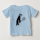 Um pinguim bonito com uma raquete de tênis faz um design de camiseta divertido para a mais nova adição à sua família amorosa de tênis. Sua escolha de cores, camiseta ou estilo de traje. Faz um presente de excelente para chás de fraldas, o primeiro aniversário do bebê, ou apenas para surpreender novas mães e pais que jogam esportes de raquete.