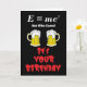 Um cartão de aniversário divertido e colorido. Apresentando a Teoria da Relatividade de Einstein E=mc2 seguida de "Mas quem se importa! É o teu aniversário". Também há imagens de dois copos de cerveja. tudo isso é colocado sobre um fundo preto contrastante. garantido para levantar um sorriso e você pode colocar seu próprio dentro de mensagem de aniversário especial.