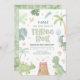 Convite de dinossauro com dinos de bebê de aquarela para o seu terceiro aniversário!
