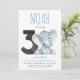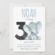 Este convite apresenta um elefante azul para uma terceira festa de aniversário. A parte de trás do convite tem um padrão de gingham azul; perfeito para a aniversário de 3 anos do tema animal da selva do menino. Personalize o convite com seus detalhes e você tem as opções para comprar convites impressos ou um download digital.