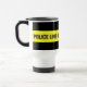 A caneca de viagem gráfica com um sinal que diga de "a linha polícia não se cruza". Igualmente uma maneira engraçada de deixar pessoas saber para permanecer longe de seu café!